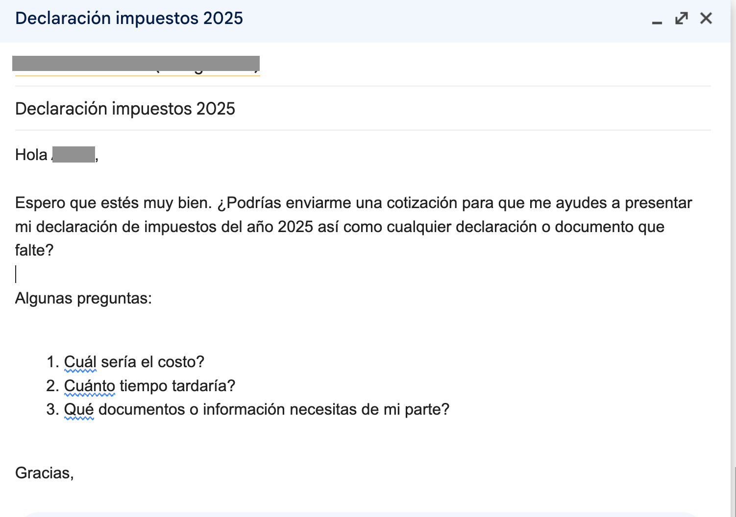 Mandé este correo a mi contador con quien he trabajado en el pasado.